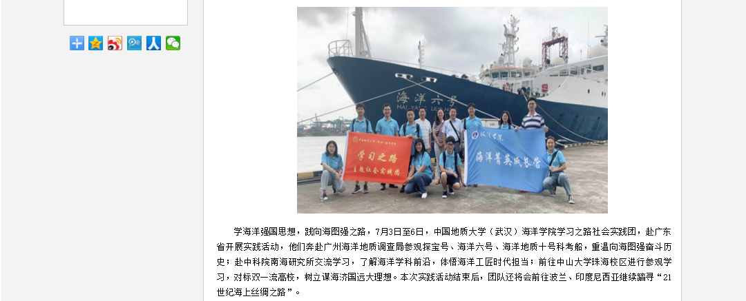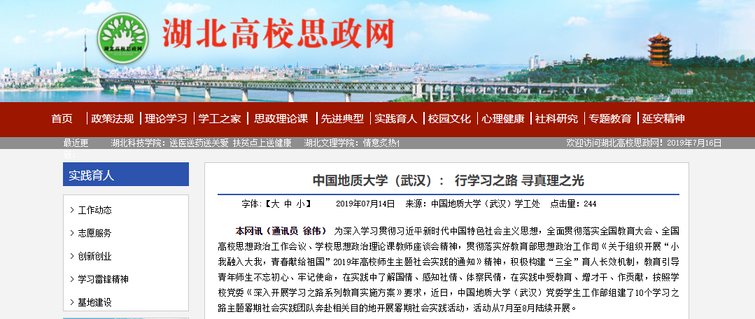湖北高校思政网报道导必赢线路检测中心“学海洋强国思想,践向海图强之路”学习之路社会实践。