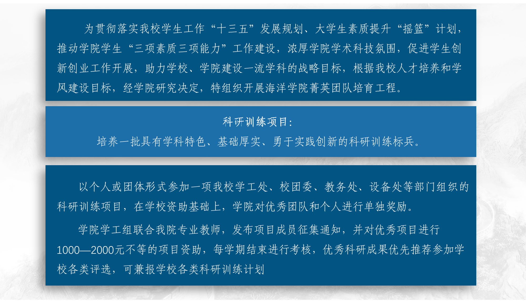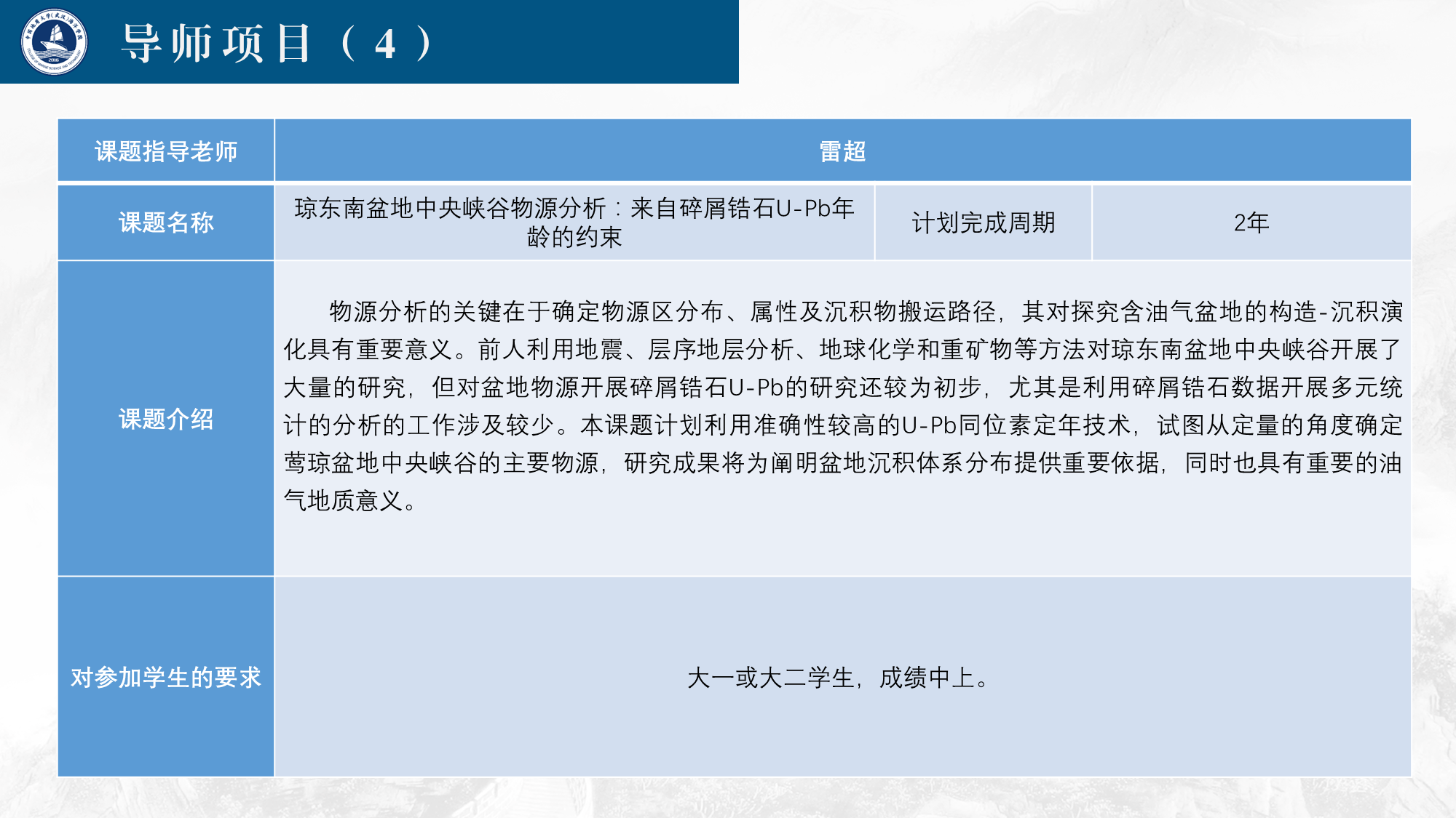 请有意向申请同学,填写报名表,于5月4日前发送至haiyangxskjb@126.com,邮件按照“意向导师+学生姓名”命名,学院将于报名截止后3个工作日内公布团队成员情况。