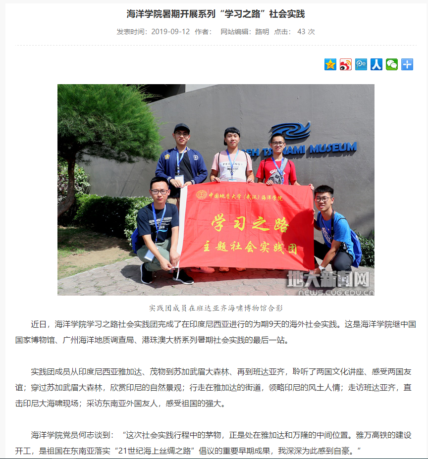 湖北高校思政网、地大新闻网地大之声陆续报道我院社会实践活动。
