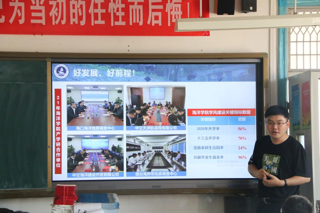 三位老师分别走进高三年级2、3、4班级,从学校专业设置、师资力量和优势学科等方面对中学同学们做学校概况介绍,为同学们耐心细致解读地大2021年招生政策,鼓励大家积极报考地大。老师们结合学院特色对必赢线路检测中心学科培养体系、人才培养目标和实习实践环节重点讲解,欢迎有意向报考地大的同学们重点关注必赢线路检测中心,期待着九月能和大家相聚在南望山下。