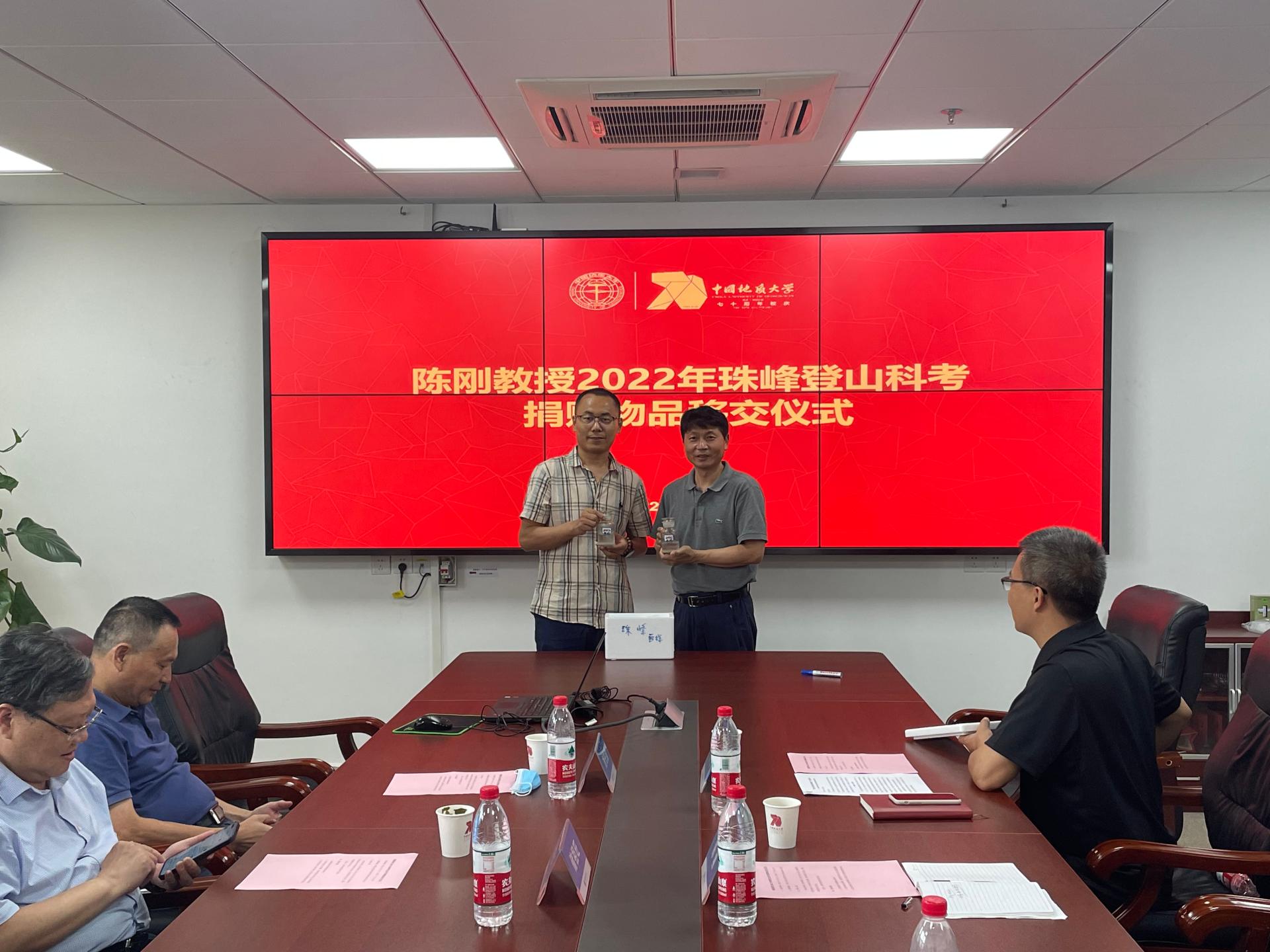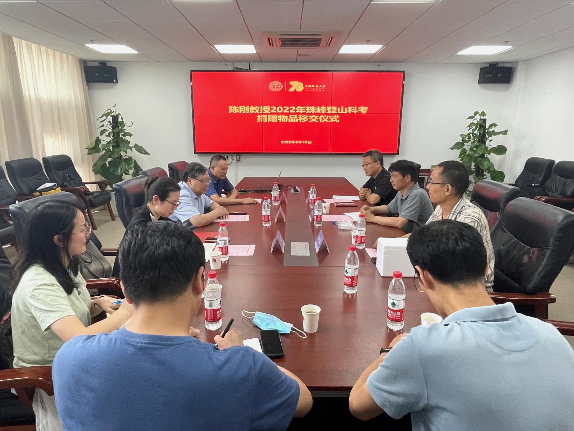 6月10日下午,陈刚教授2022年珠峰登山科考捐赠物品移交仪式在南望山校区东区教学综合楼A1804会议室举行。校党委常委、宣传部部长、校庆工作办公室主任储祖旺,必赢线路检测中心陈刚教授,图书档案与文博部、校团委、环境学院和必赢线路检测中心等相关单位负责人参加仪式。