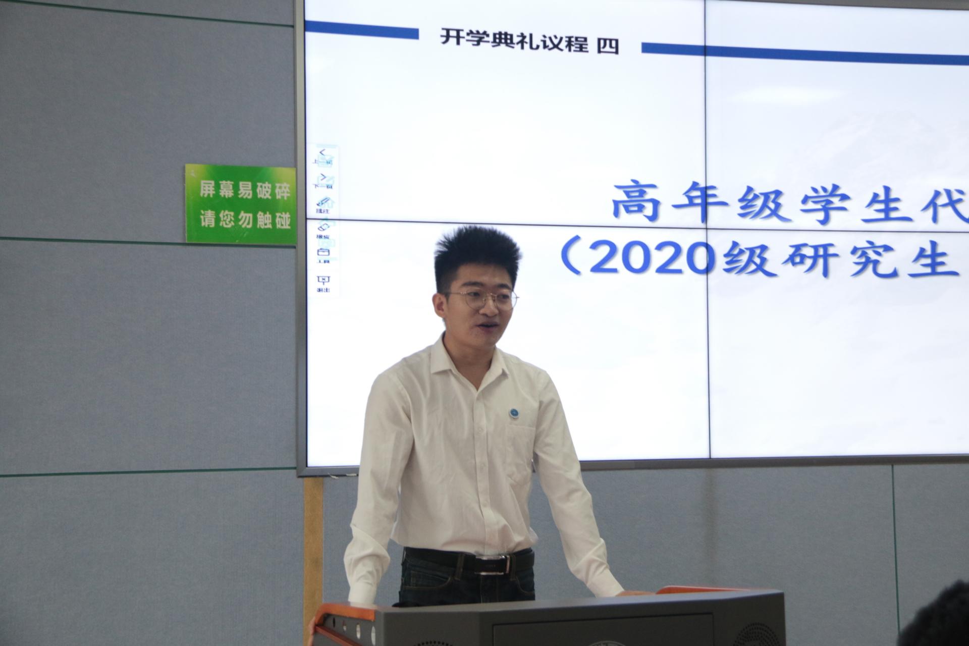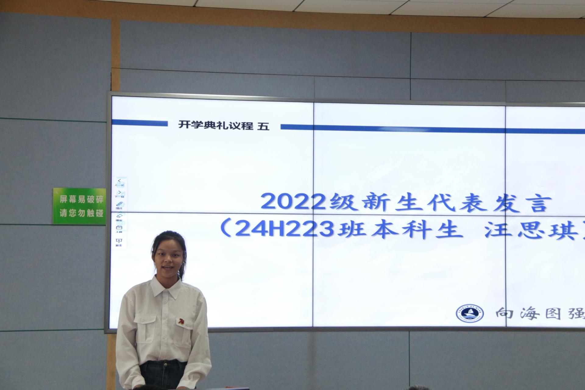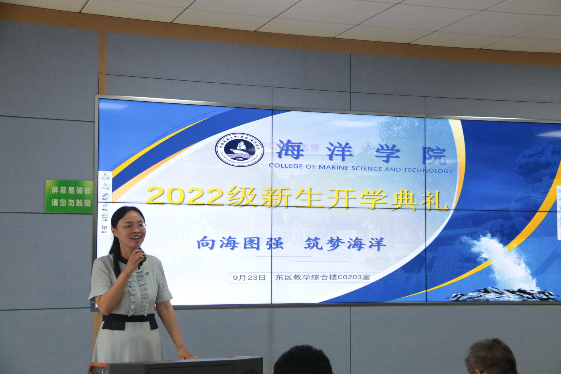 新生代表2022级本科生汪思琪、老生代表2020级研究生张彦泽发言,表示作为地大海洋学子要把握好学校学习实践的资源和平台,深耕细作,练就过硬专业本领,在国家“海洋强国”号召下,以青春“小我”书写强国“大我”。