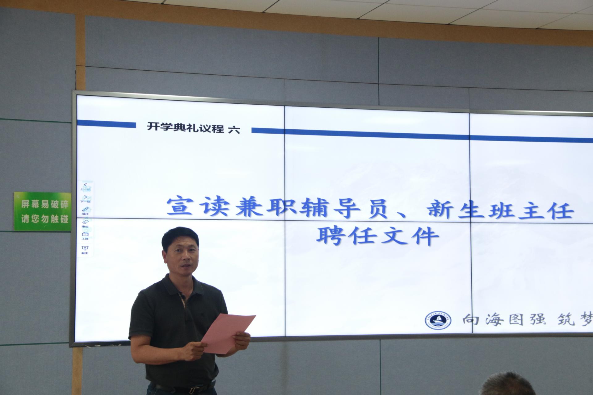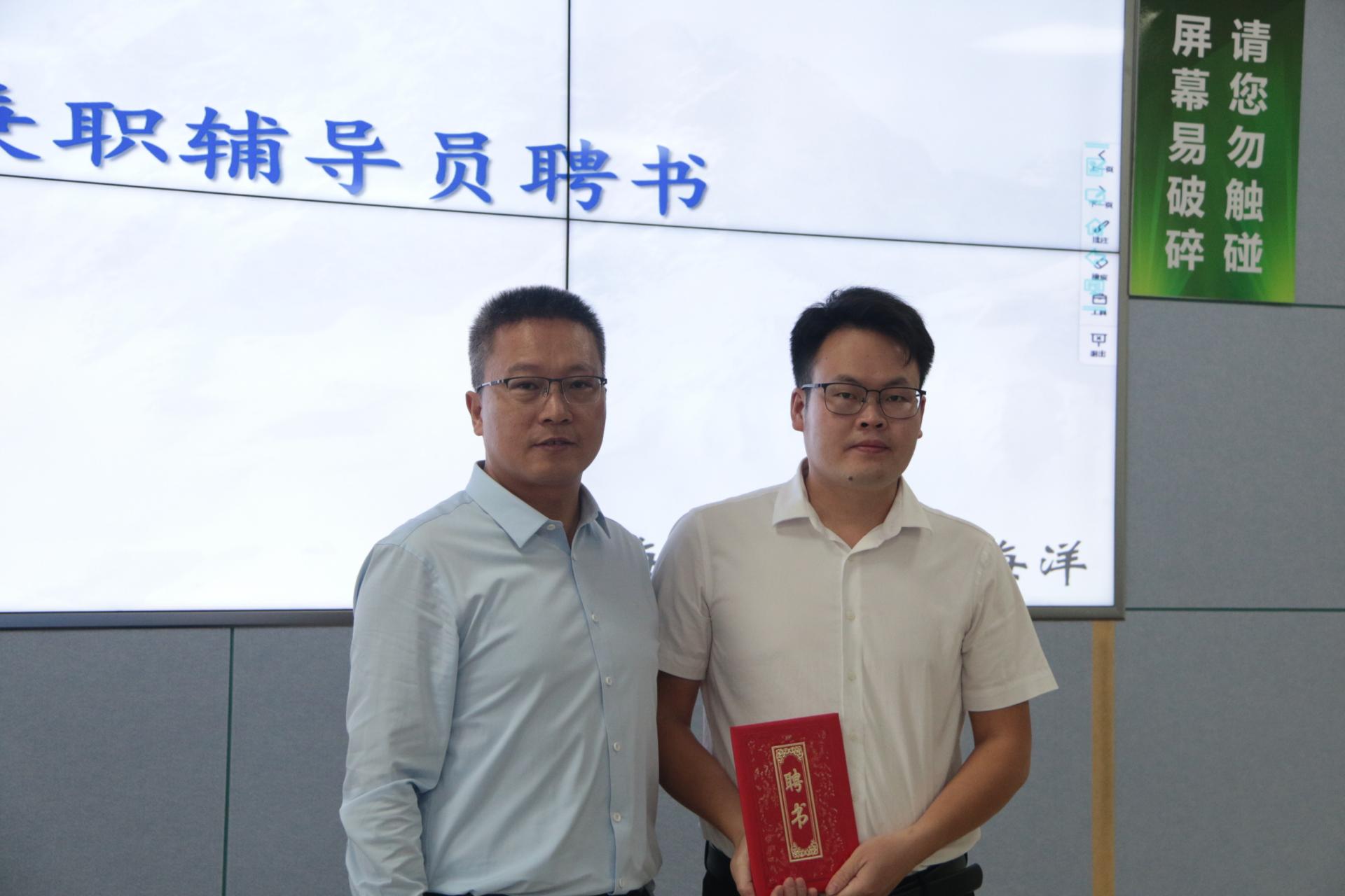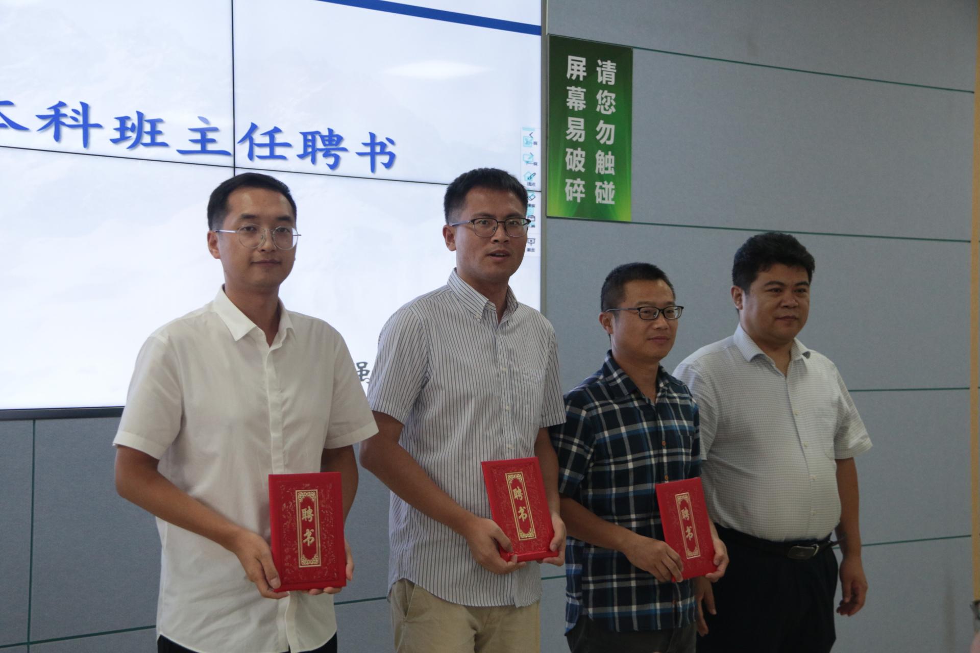 学院陈刚教授宣读兼职辅导员、新生班主任聘任文件。学院党委书记成军、副院长姜涛分别为兼职辅导员和2022级本科班主任颁发聘书。