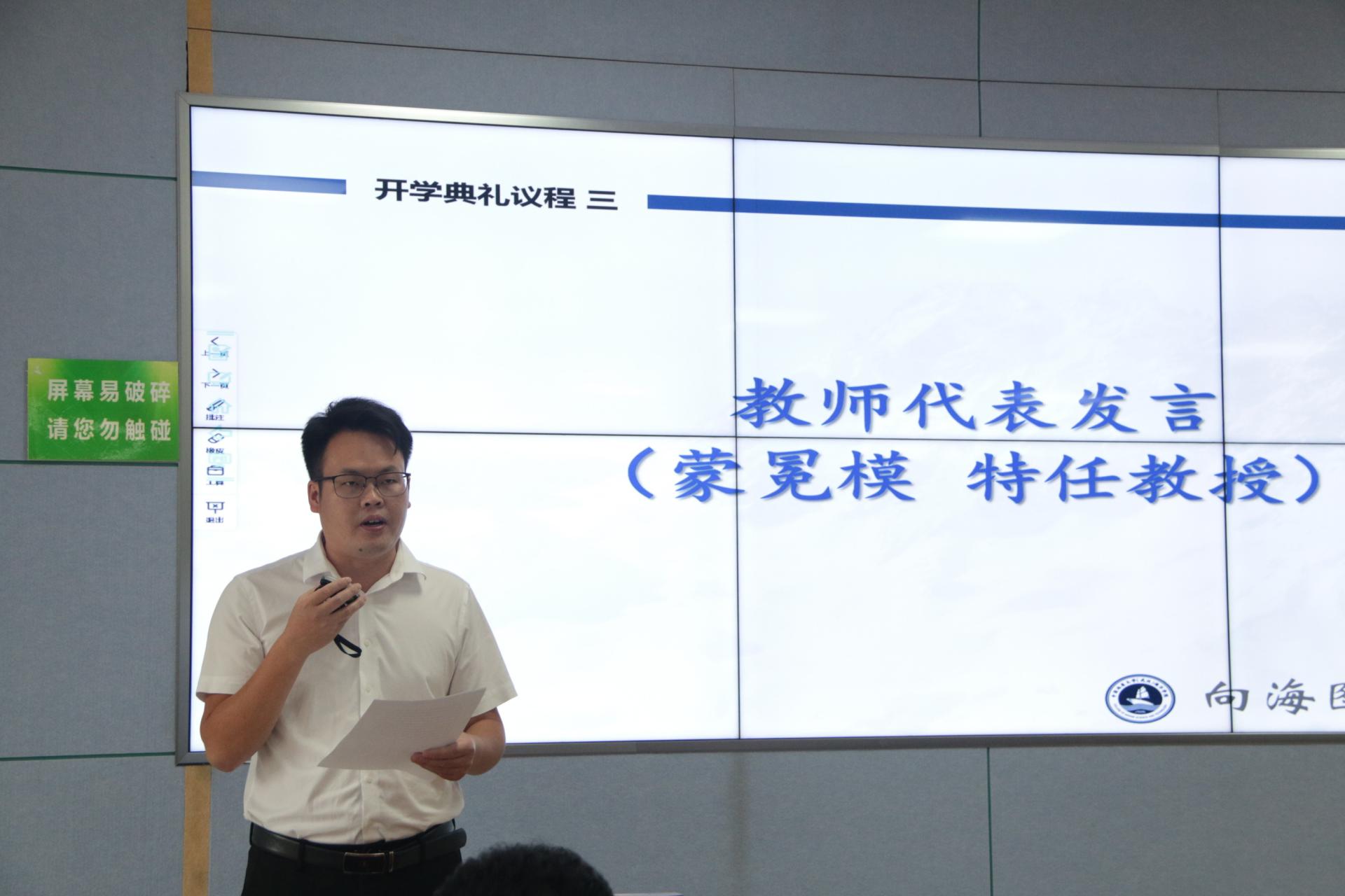 教师代表学院特任教授蒙冕模,结合自身成长路径以“直面苦难,逆风成长”为题结进行分享发言,激励同学们要明确自身奋斗目标,为理想做足充分准备,坚信通过不懈努力,一定能够到达心中的彼岸。