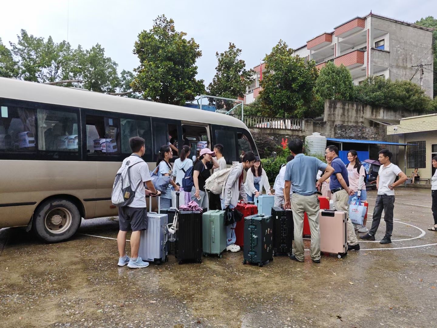 图为团队到达石坑完全小学(崔影供图)