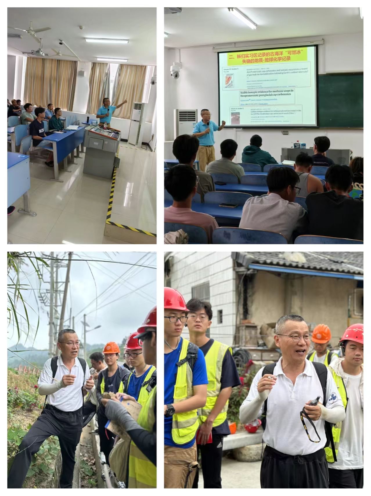 9月6日至9月20日,孙启良副院长、蒙冕模教授、何云龙副教授作为带队老师,杜清平主任为辅导员、硕士研究生江玮航为助教,带领39名本科生在中国地质大学秭归实习基地开展了野外地质实践教学。教师通过野外实地察、地质技能实操、野外展板讲解和专题课程等丰富的教学手段,强化了学生课堂所学相关知识,训练了“将今论古”的科学思想,引导学生透过地质现象剖析成因机制,培养科学思维。此外,课程思政教育也贯穿整个实习过程,在实习过程中蒙冕模老师对我国目前的能源形势做了详细的介绍,使学生在实践中深刻理解了海洋强国战略、能源矿产资源的重要性。