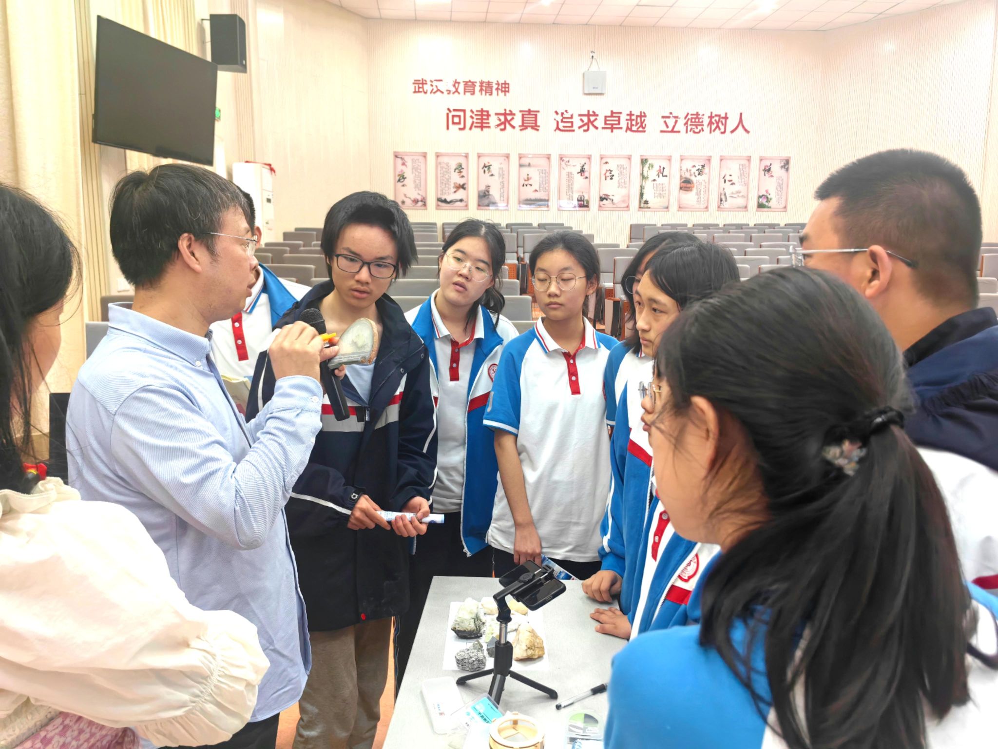 3月26日,武汉市第十四中学阶梯教室内星光璀璨,李四光地学社和高一年级的同学们迎来了一场震撼人心的地质科学盛宴。王龙樟教授以"舟山群岛:冰与火锻造的地质史诗"为题,带领师生跨越时空,在玄武岩的纹路与潮汐的韵律中,解码八千年文明下的地质奇迹。,同时面向十四中学子开展中国地质大学招生宣传。这座由晚清名臣张之洞于1903年创办、走出过李四光等科学巨匠的百年学府再次回荡起地质科学的时代回响。