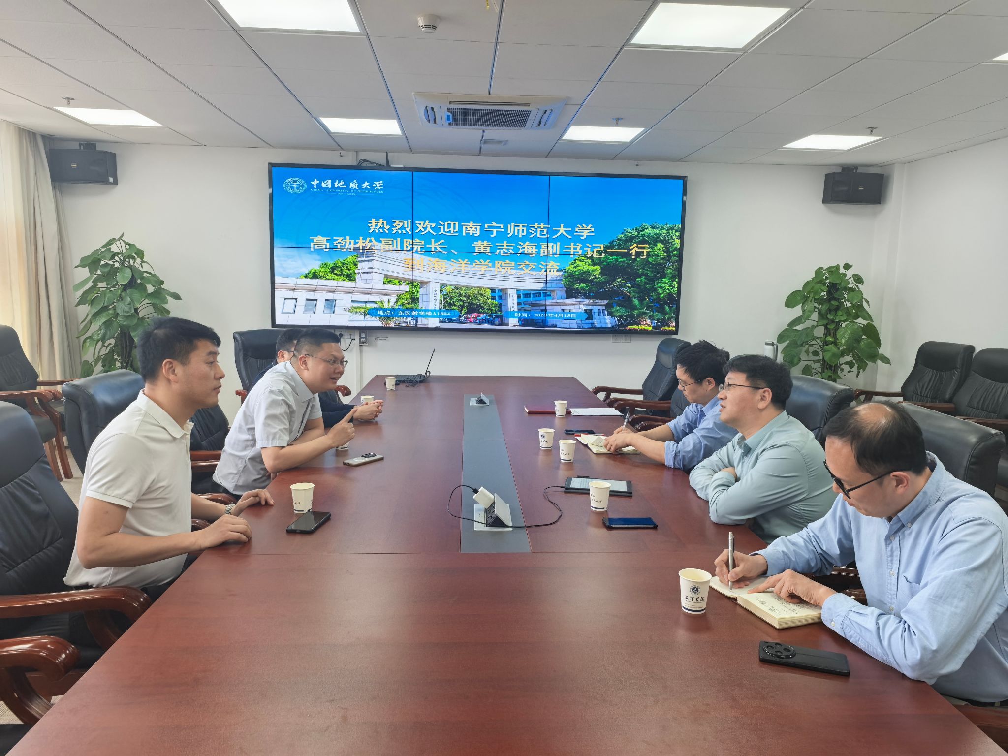 2025年4月15日,南宁师范大学高劲松副院长、黄志海副书记一行莅临学院进行座谈交流。必赢线路检测中心党委书记刘国华、院长孙军、副院长宫勋及团委书记陈波等参加交流,工程学院党委副书记高晓东陪同参会。