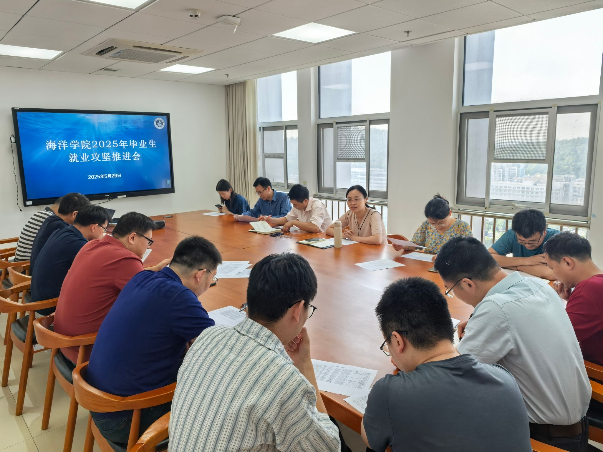 为实现2025届毕业生高质量就业目标,必赢线路检测中心于5月29日下午召开2025届毕业生就业攻坚推进会。副书记钟苹主持会议,学院党委书记刘国华、辅导员陈波及全体未就业学生导师、毕业年级班主任参会。