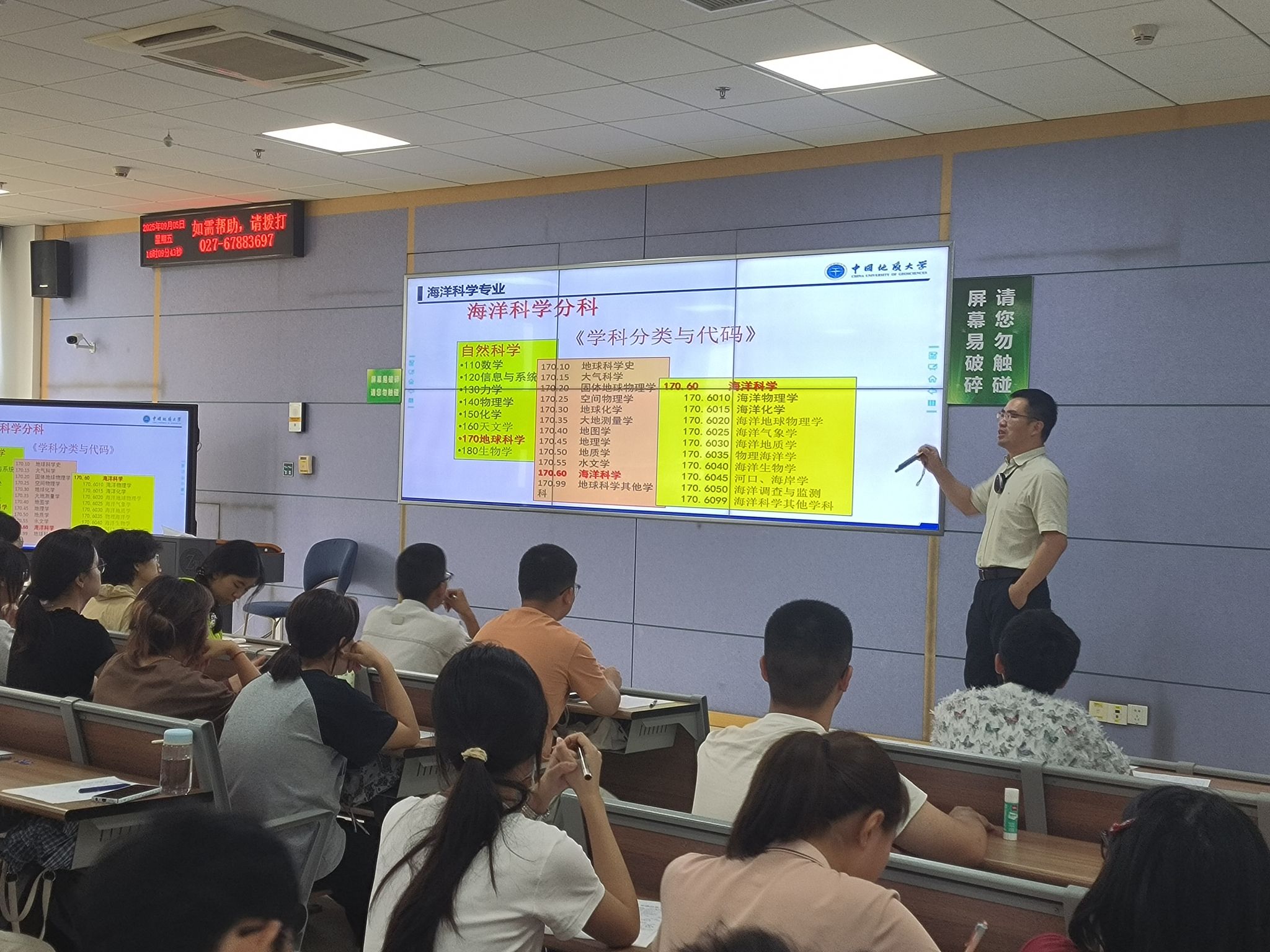 9月4日晚上,傅安洲老师为同学们讲述的“我们的历史与精神”讲座,回望学校自建校以来走过的峥嵘岁月,深刻理解了“艰苦朴素、求真务实”校训的深刻内涵与时代价值。从地质人“以献身地质事业为荣、以艰苦奋斗为荣、以找矿立功为荣”的“三光荣”传统,到一代代地大人为国家能源资源安全、生态文明建设所做出的卓越贡献,新生们感受到的不仅是一所大学的历史,更是一种精神的传承。这门课为新生们系好了大学生涯的“第一粒扣子”,引导他们思考如何将个人成长融入学校发展和国家需要,奠定了坚实的思想基础。