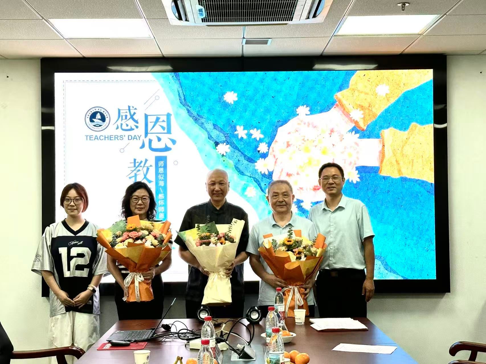 党委书记刘国华、学生代表分别为荣休教师和教师代表献花。
