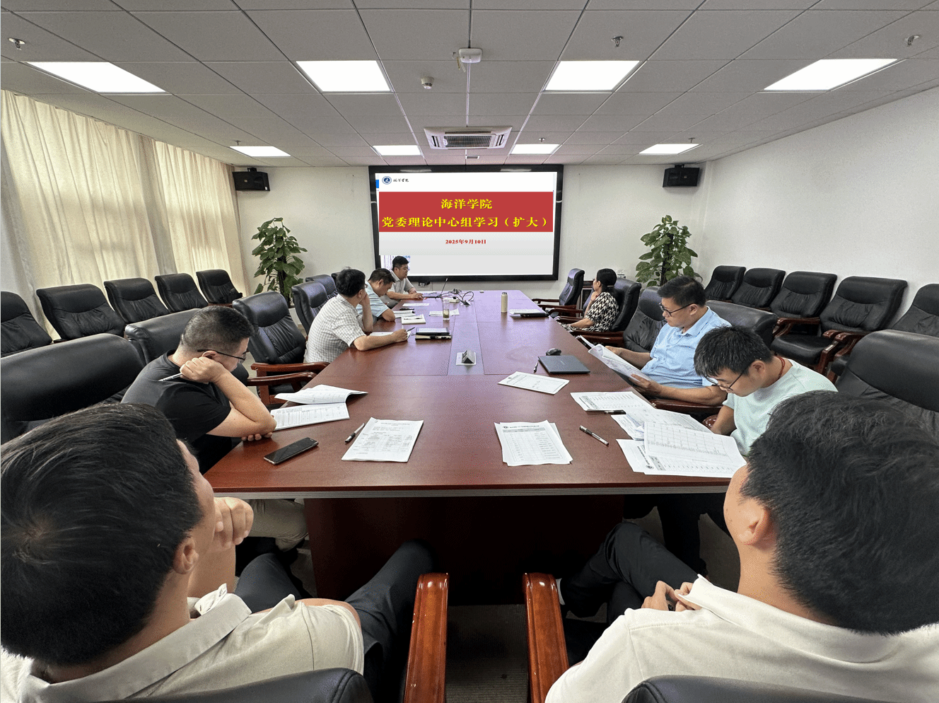 党委书记刘国华在总结讲话中指出,本次中心组学习既是一次深刻的思想理论武装,也是一次务实的工作部署推进会。他强调,学院党委须持续推进理论学习常态化、制度化:一要永葆“严字当头”作风底色,以中央八项规定精神为标尺,从严从实强化党风廉政建设,营造风清气正的育人环境;二要锚定“海洋强国”战略目标,以总结“十四五”和谋划“十五五”为指引,推动学科建设与国家战略需求深度绑定;三要聚焦“攻坚克难”任务导向,对照学校中期工作部署的“七项重点任务”,细化学院下半年工作清单,在学科特色发展、人才队伍建设、科技创新能力提升等关键领域拿出“硬举措”,为学校和学院“十四五”圆满收官和“十五五”谋篇布局奠定更加坚实基础。
