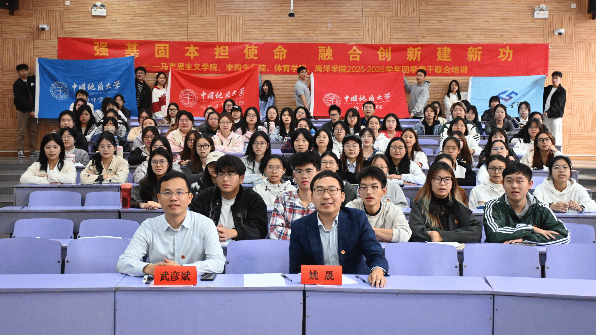 为深入学习贯彻党的二十大精神,全面提升学生骨干的理论素养、组织能力与实践水平,马克思主义学院、李四光学院、体育学院与必赢线路检测中心联合举办的2025-2026学年新任骨干联合培训于2025年11月2日正式拉开帷幕。
