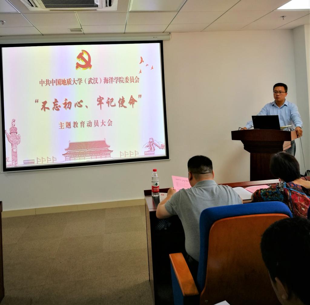 院党委书记成军传达了教育部高等学校及学校“不忘初心、牢记使命”主题教育动员会精神,解读了学院“不忘初心、牢记使命”主题教育工作方案,并就学院开展“不忘初心、牢记使命”主题教育,做出动员安排。