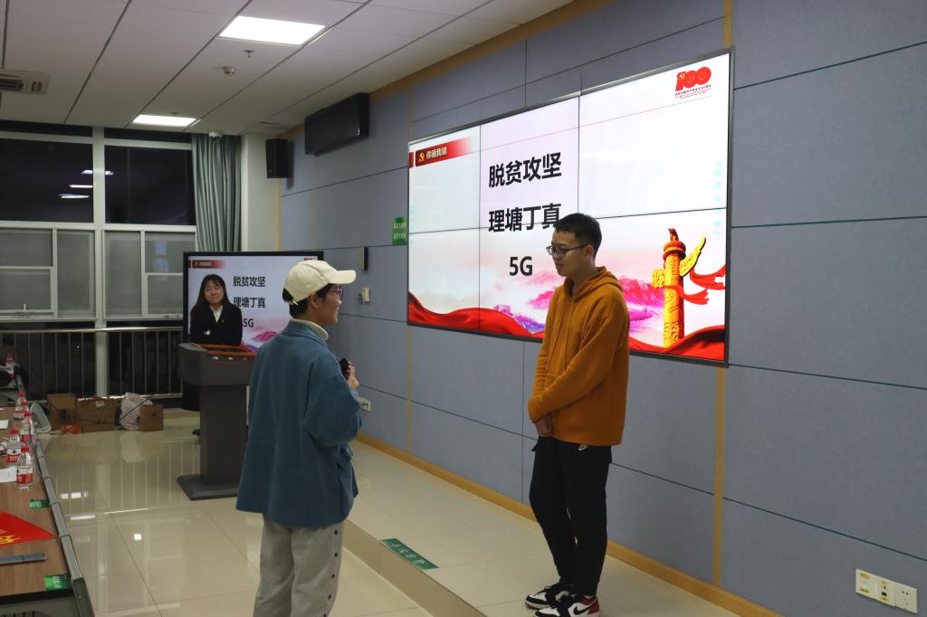 在“忆百年征程”和“看时代热点”两个环节,12支队伍通过举答案卡的方式完成了作答。题目内容丰富多样,涵盖了19217月中国共产党成立至今的重大历史事件和2021年两会的基础知识和热点内容。参赛队伍比拼激烈,两轮结束后多支队伍平分。为此,主办方增设了加赛环节,由平分队伍抢答得分。最终,分数高的六支队伍以扎实的理论知识获得继续比赛的资格,进入第三轮的比拼。