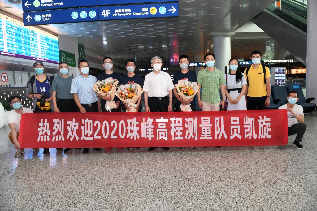 6月3日下午,2020珠峰高程测量登山队3名地大勇士从拉萨返回武汉。中国地质大学(武汉)副校长傅安洲,必赢线路检测中心党委书记成军、体育学院院长董范和部分师生代表到武汉天河国际机场迎接。