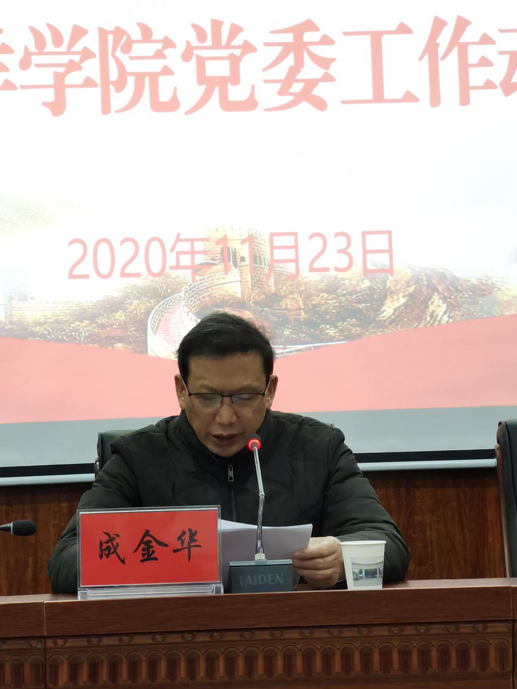 2020年11月23日,中国地质大学(武汉)党委巡察必赢线路检测中心党委工作动员会在南望山校区东区教学综合楼A-708会议室召开。学校党委副书记成金华出席会议,学校党委第三巡察组组长薛保山、副组长张瑞生和成员陈汉英、张京、严森,学院全体教职工、学生代表等五十余人参加会议。副院长姜涛主持会议。