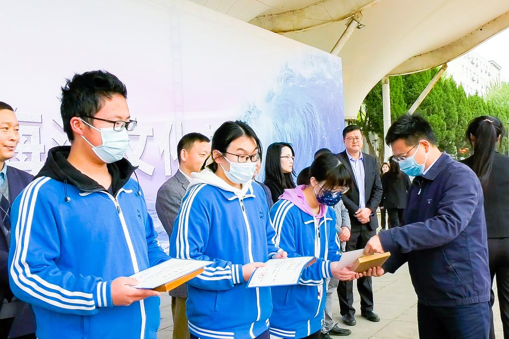 开幕式环节,中国地质大学(武汉)团委书记朱荆萨为必赢线路检测中心“科海扬帆,逐梦深蓝”海洋文化科普宣讲团授旗;教务处张建和副处长宣布中国地质大学2021年“HiYoung杯”海洋知识竞赛正式开赛;学工处朱继副处长为武汉市第十四中学海洋知识竞赛获奖学生颁奖。