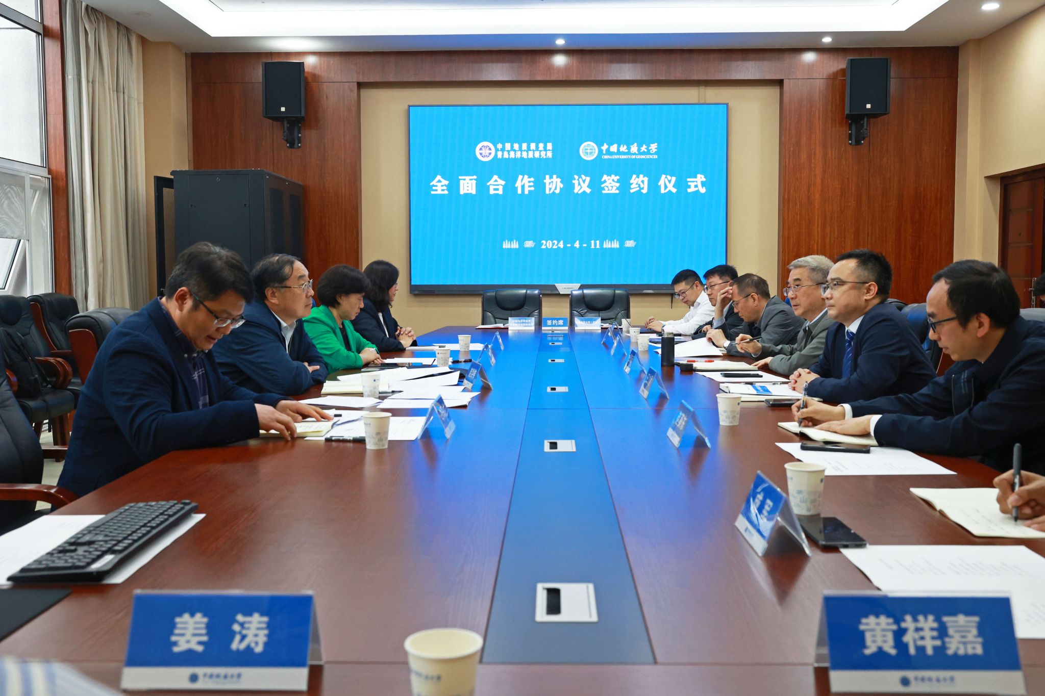 地大新闻网讯 (记者 孙彦钦)4月11日,我校与自然资源部中国地质调查局青岛海洋地质研究所签署战略合作协议。青岛海洋地质研究所所长、党委书记赵洪伟,副所长印萍,人事教育处处长白凤龙,科学技术处处长杨金玉;我校校长王焰新院士,副校长王力哲,相关单位负责人参加座谈交流。王力哲主持座谈。