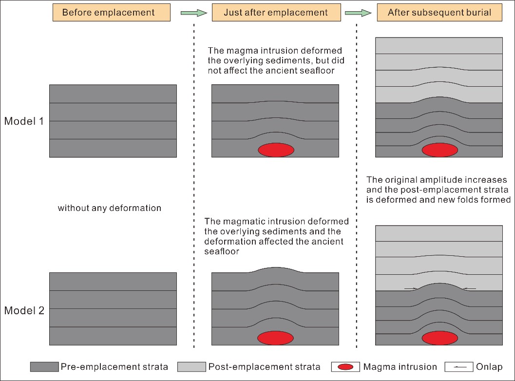 最近,Journal of Asian Earth Sciences (JAES)发表论文,基于地震资料和钻井资料,揭示了岩浆在侵入过程中以及侵位以后上覆沉积变形的特征、规律和成因。该研究解决了悬而未决的岩浆侵入导致沉积物变形的难题,极大地推动了岩浆活动的相关研究。