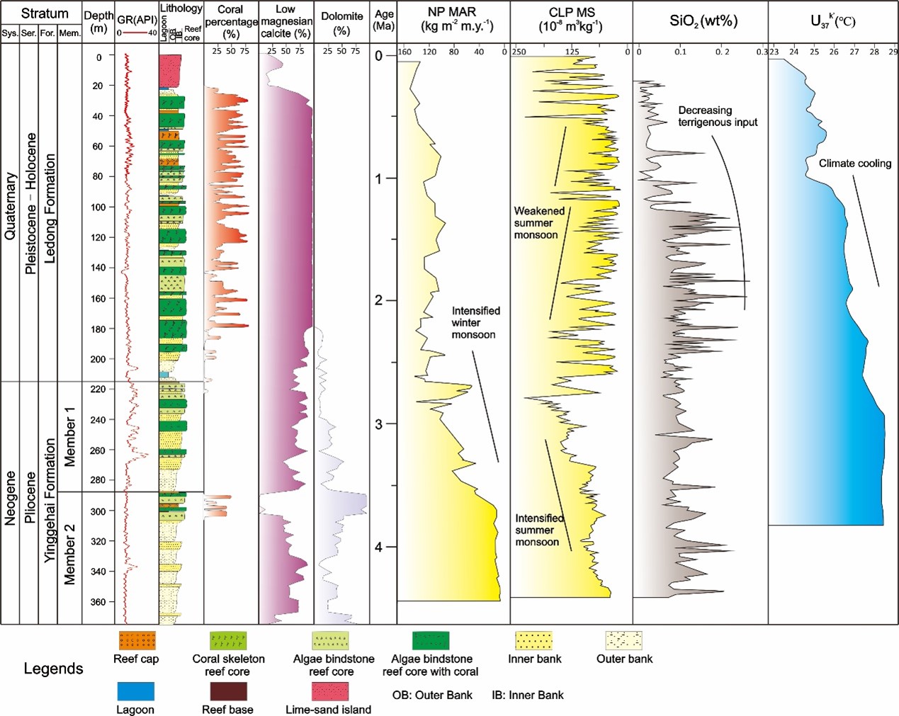 本研究利用噪声模型分析生物礁发育时期的相对海平面变化,探明了上新世以来海平面变化对生物礁发育的控制作用,对探明生物礁的生长过程以及对未来生物礁生长环境的预测都有着重要的意义和参考价值。