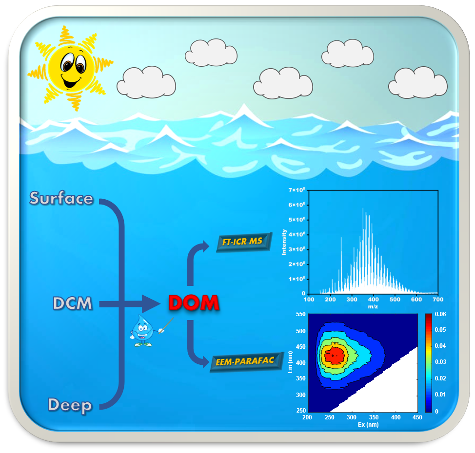 海洋溶解有机物(DOM)是一种复杂的有机化合物,由成千上万的碳(C)、氢(H)、氧(O)、氮(N)和硫(S)分子组成,是全球碳循环中最大和最活跃的有机碳库之一。这些化合物不仅在浓度和结构上有所不同,而且还来自于各种浮游生物、微生物和海洋环境。超过95%的海洋DOM是惰性溶解有机物(RDOM),通过微生物的作用被埋在深海数千年,其来源和命运影响到全球碳循环。由于其复杂性,约90%的DOM仍未被描述。因此,了解DOM分子的来源和组成将为阐明其在全球生态系统中的重要作用提供重要的理论和数据支持。东印度洋(EIO)是世界上最大的热带营养贫乏海域,构成了世界最大的暖池的主要部分。通过FT-ICR MS和EEM-PARAFAC技术研究东印度洋公海DOM的分子和成分构成,将有助于更好地了解DOM的垂直分布特征及其对海洋碳循环的影响。