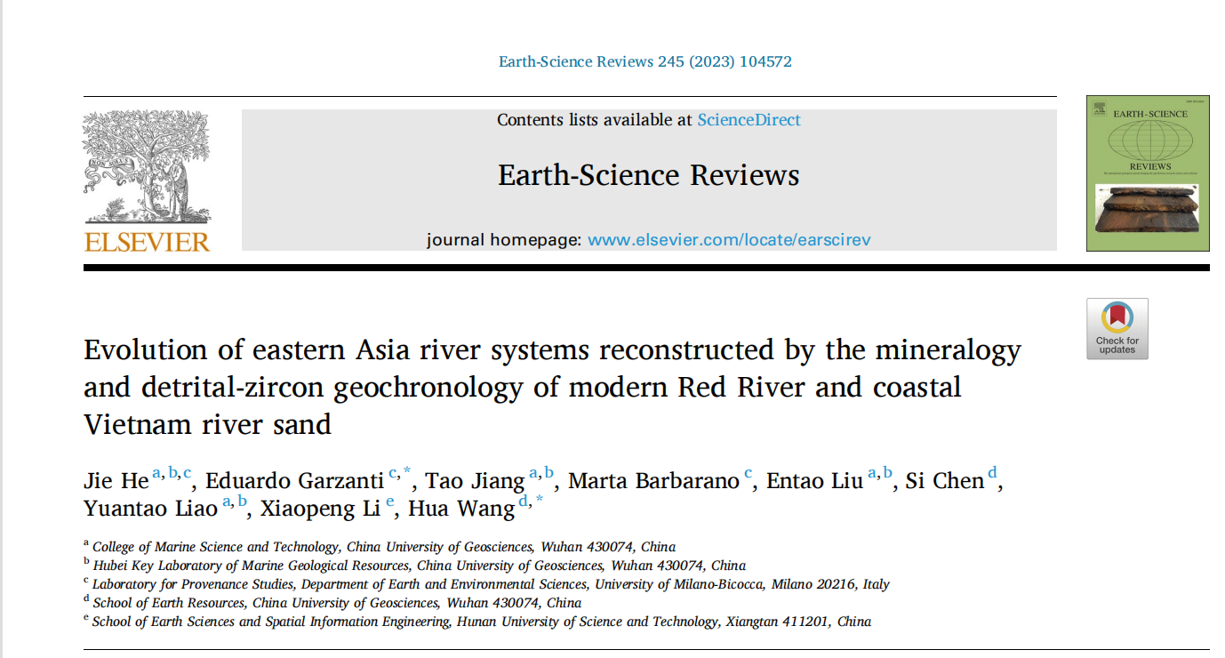 2023年9月22日,地学权威国际期刊《Earth-Science Reviews》以 “Evolution of eastern Asia river systems reconstructed by the mineralogy and detrital-zircon geochronology of modern Red River and coastal Vietnam river sand” 为题在线发表了我院姜涛教授团队的研究成果。