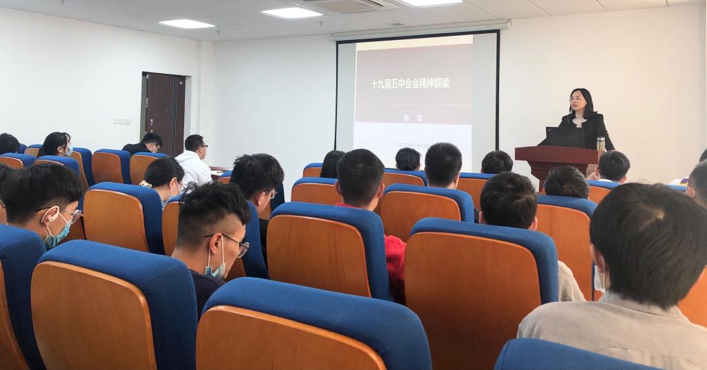2020年11月13日下午,必赢线路检测中心党委副书记钟苹于东教A座1805会议室为学院学生党员上“十九届五中全会精神解读”专题党课。