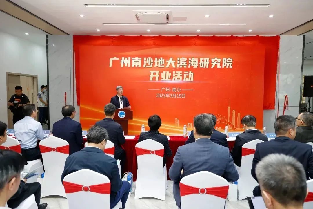 3月18日上午,广州南沙地大滨海研究院发展论坛暨开业活动在广州南沙视联科创谷举行。南沙区人大常委会主任李德球,南沙开发区党工委副书记谢伟、副区长陈国庆,中科院广州地化所彭平安院士,中科院南海所党委书记谢昌龙,广州海洋地质调查局党委书记严兴华,澳门大学区域海洋研究中心徐杰教授等,我校党委书记黄晓玫,校长王焰新院士,副校长王华,党委常委、宣传部部长储祖旺,广州南沙地大滨海研究院(简称“滨海研究院”)院长谢树成院士,相关专家学者、部门负责人及研究院师生参加活动。
